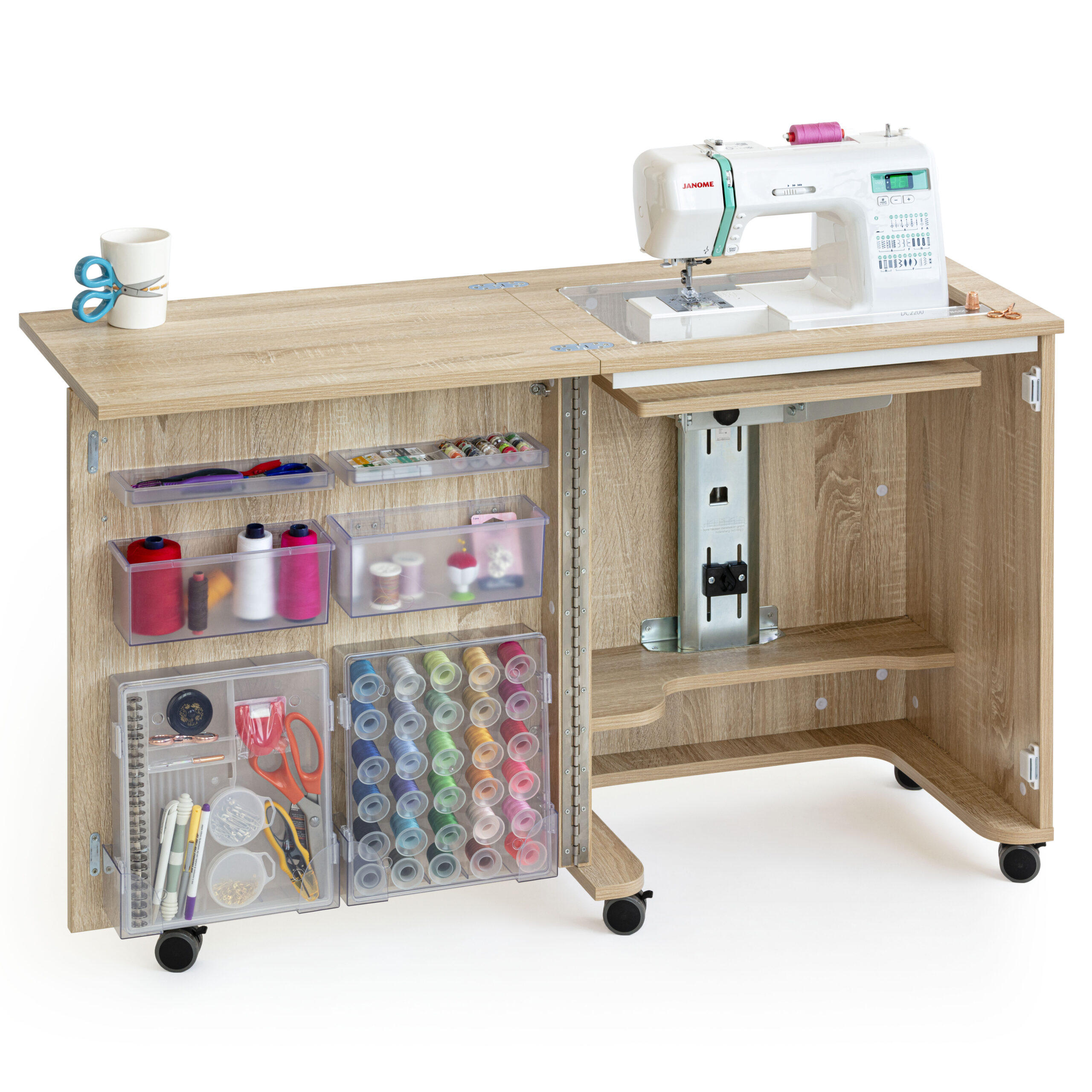 C’est l’armoire idéale pour les petites maisons ou les appartements et pour les machines à coudre de petite et moyenne taille.